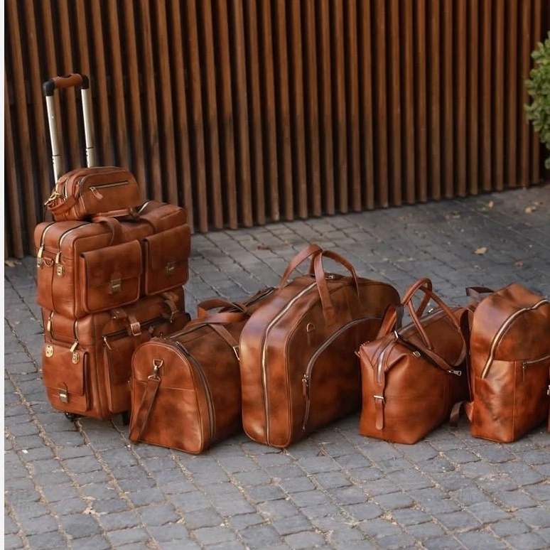 کاور ساک چرم طبیعی دست دوز قابل سفارش در رنگ های متنوع چرم طبیعی قابل حمل با ترولی انواع چمدان بسیار بسیار زیبا و لاکچری خاص
